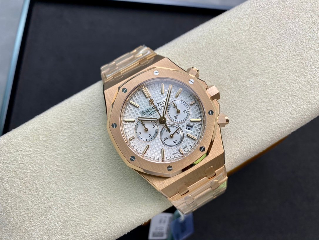 Audemars Piguet Royal Oak Chronograph White Dial Rose Gold on 904L Steel - Superclone