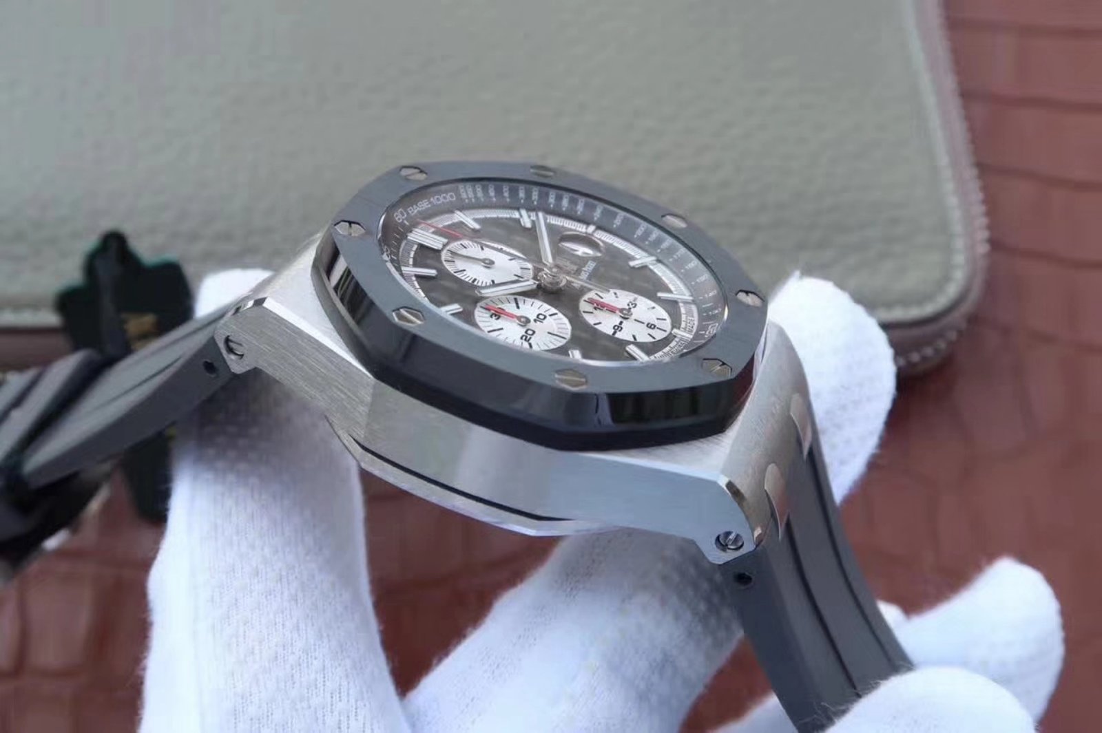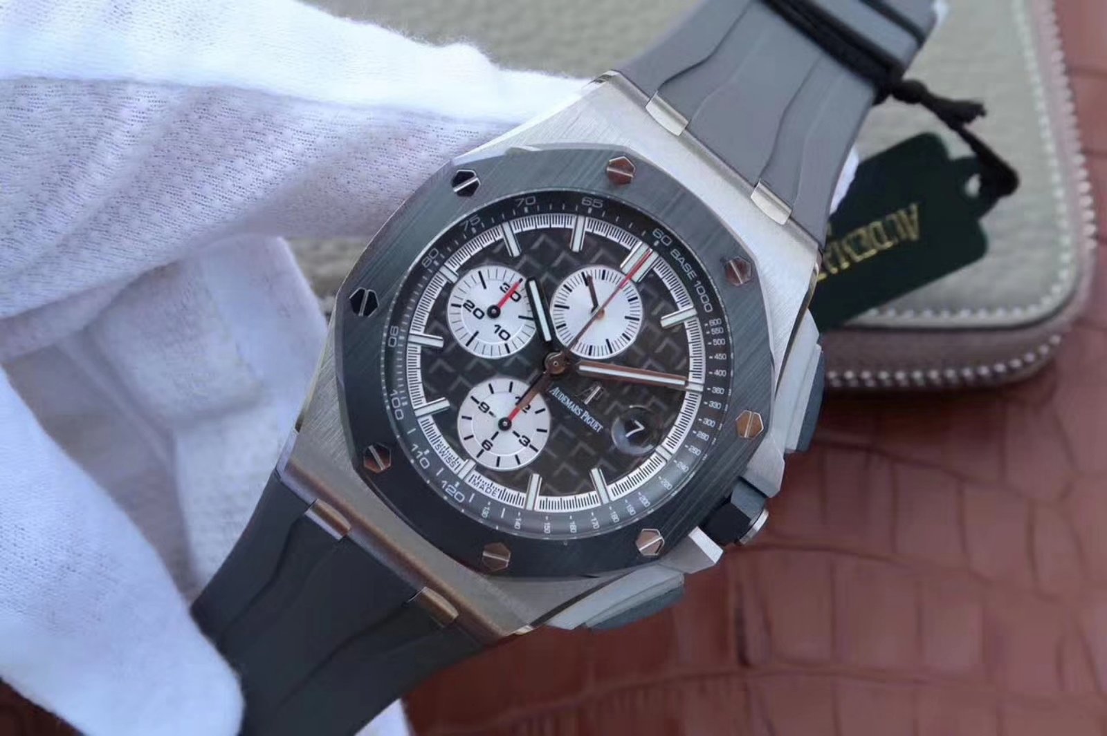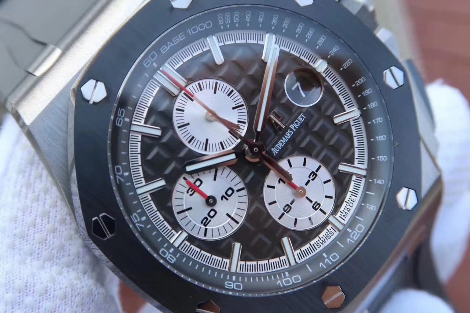 Movement: Base Movement: SWISS 3120 automatic chronograph movement at 28800vph; Decoration: Platinum plated movement plate and rotor which are made according to the genuine movement, the best looking AP Calibre 3126 Movement Clone at the moment.