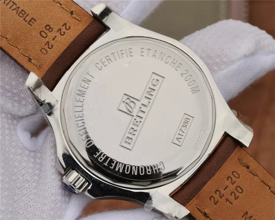 Solid Caseback with Breitling Markings and Engravings.