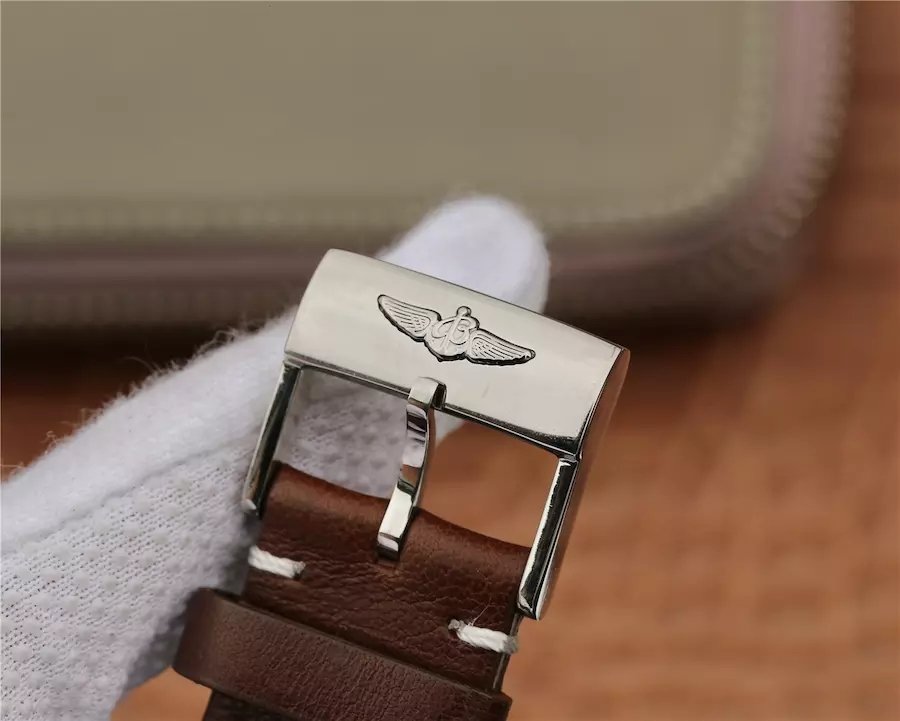 Genuine Leather Strap with Stainless Steel Tang Buckle complete with Breitling Markings and Engravings