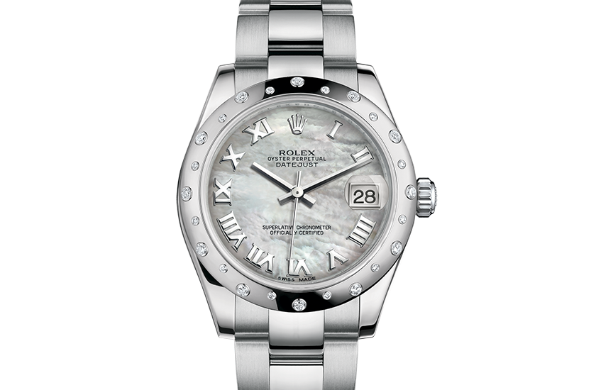 Model case:Oyster. 31 mm. Oystersteel. white gold and diamonds