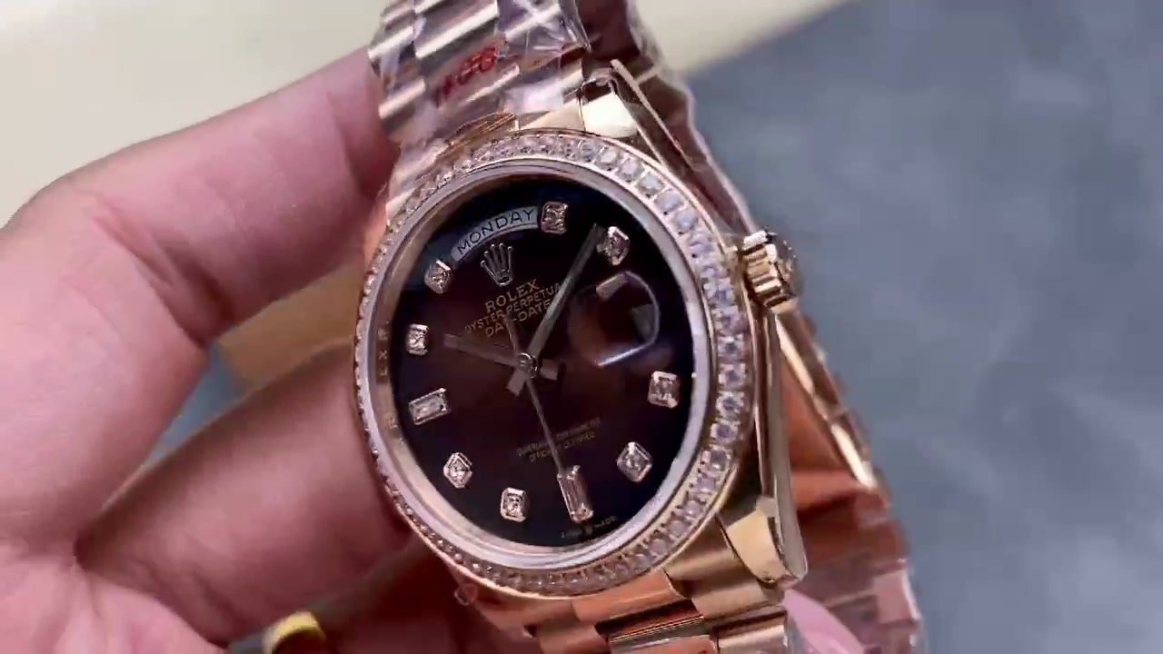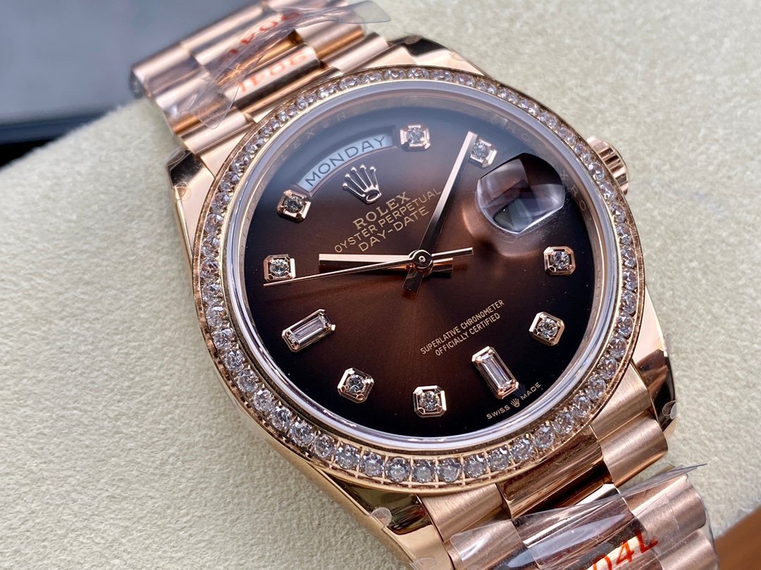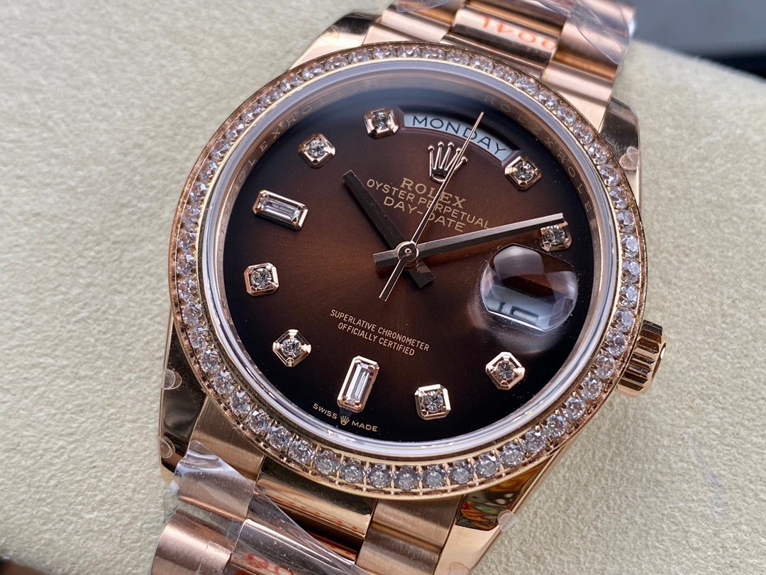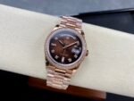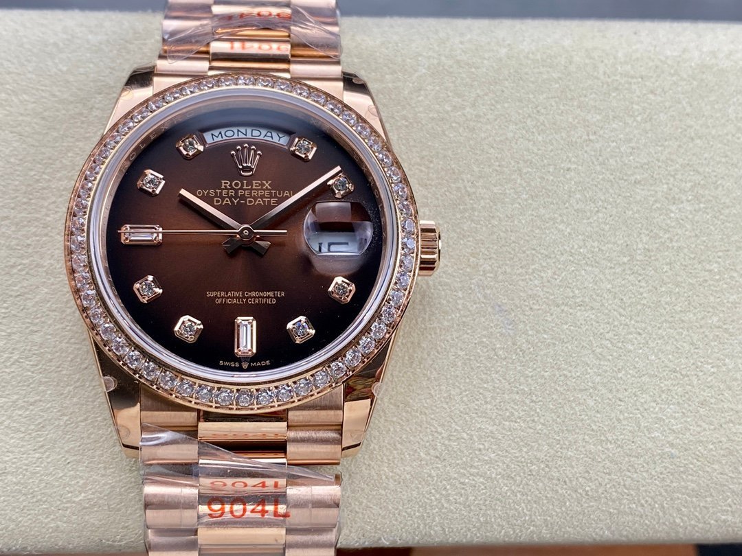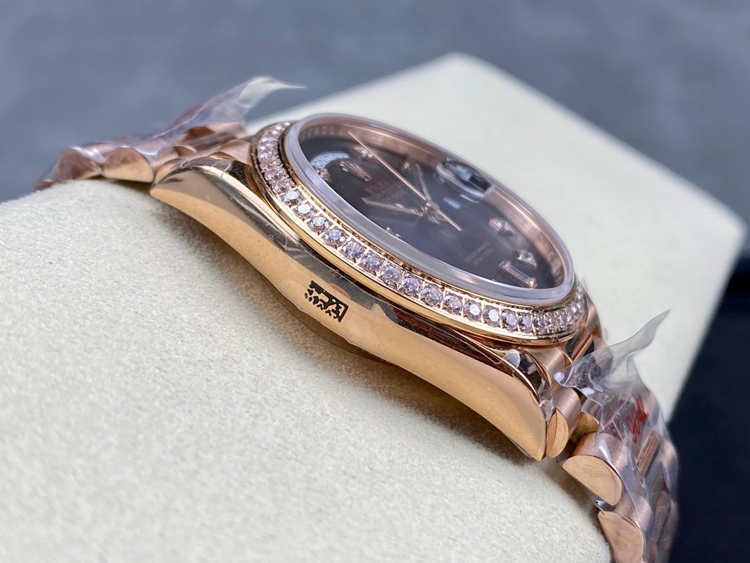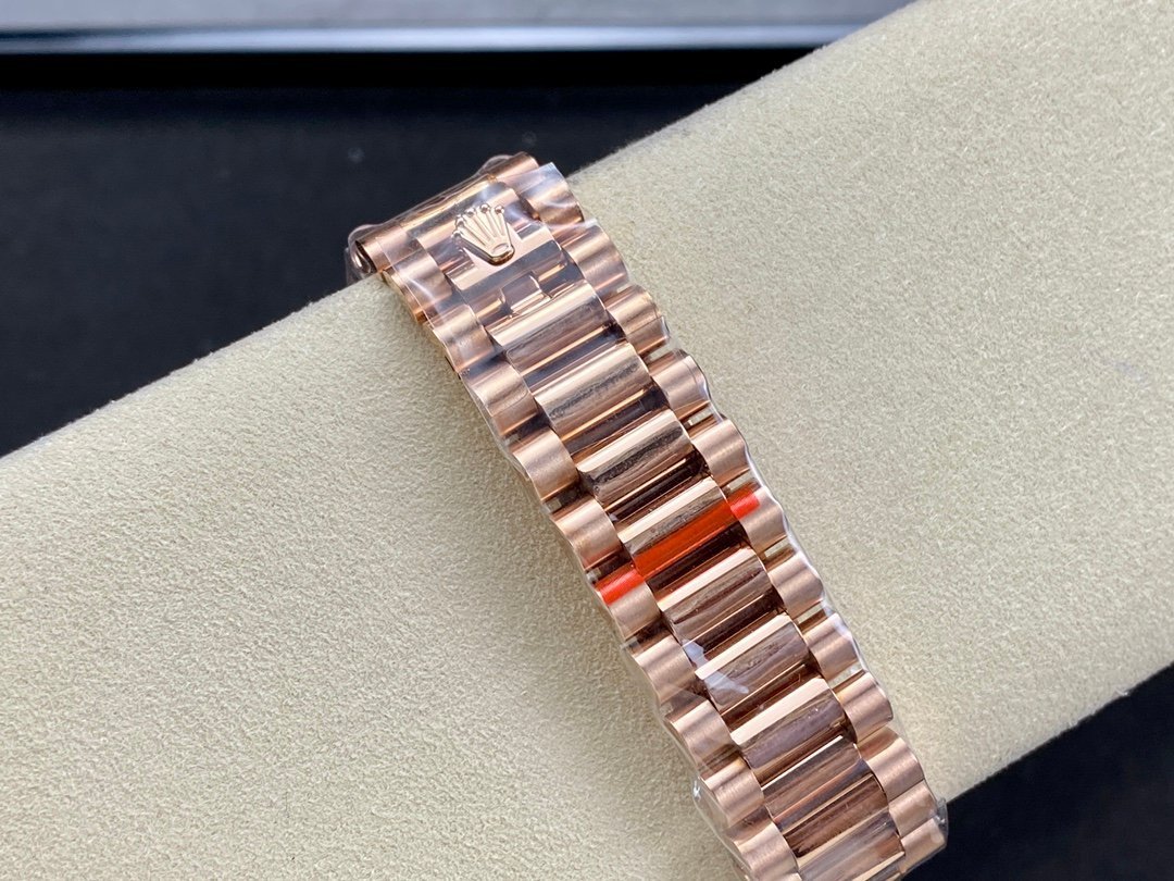 Here are the specifications of the V2 version of 18k gold plated 36mm Daydate Rolex Weekly Journal Superclone 2836 Movement 36mm Counterweight day date gold face: