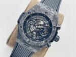 The new model follows the big bang series and is made of special carbon fiber materials. Yubo watch is equipped with 7750 modified "hub1242" automatic movement, which can be clearly seen through the watch case, and the beauty of extraordinary mechanical structure can be seen at a glance.Big bang series carbon fiber wristwatch adopts bold red, blue and black, showing an amazing strong visual impact effect. The internal precision mechanical structure is clearly presented through the watch case. The design of pointer and hour scale makes the whole surface send out a strong sense of rhythm and architecture, showing the extraordinary charm of time. The watch is equipped with a 30 minute timing dial at 3 o'clock and a second hand dial at 9 o'clock, which echoes the logo of Hublot Yubo watch at 12 o'clock.Watch with black structured rubber strap. In addition, the watch is equipped with a "one button" quick strap change system. The wearer can easily and quickly replace the strap with one click!!!p