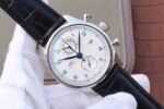Portugal series multi-function timing watches. The watch is elegant and simple in business, highlighting the outstanding male side. Great Details: The watch size is 42mmx13.5mm. The white plate is fresh and natural, infinitely close to the original. The blue treasure glass in the shape of the lid is coated with double-sided HD anti-vertigo coating, the effect is bright, the quality is excellent. "Technological Breakthrough" for many years of research and development, the final positive results, perfect re-engraving of the world's own Cal.89361 movement, all functions are realized, including operating feel and debugging calendar direction exactly match the original movement. ZF innovation masterpieces continue to heat up, wait for the various table friends to appreciate the taste.