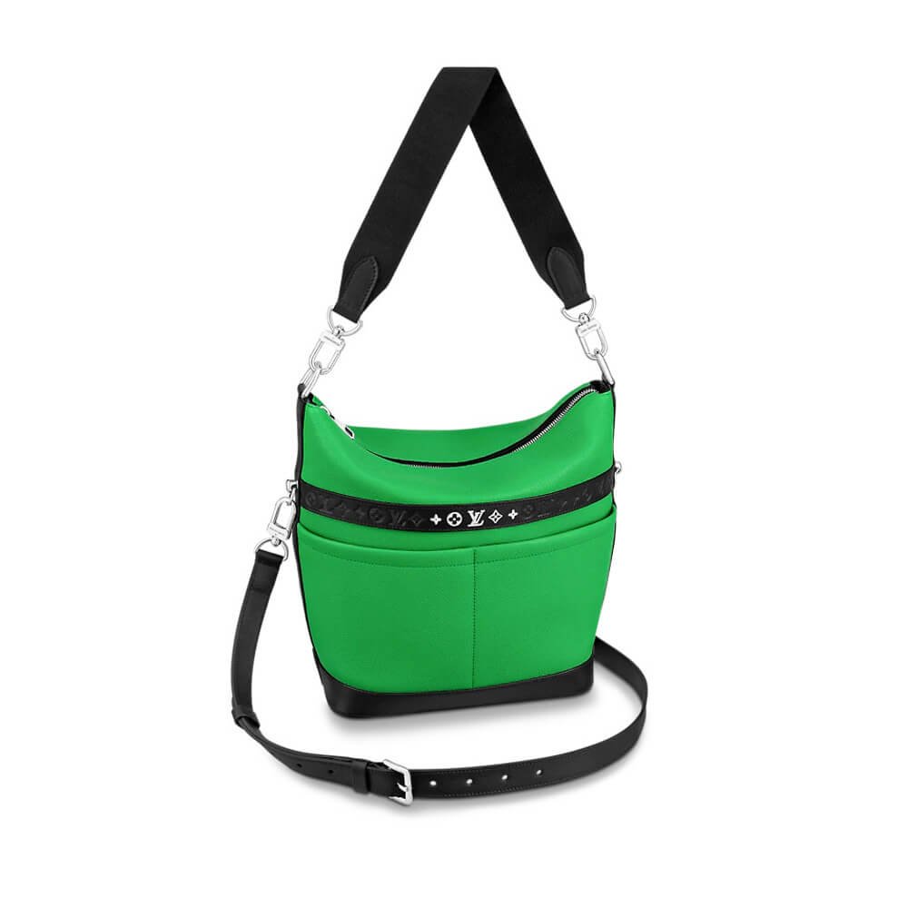 The Cruiser GM bag turned heads at the Spring-Summer 2021 show. Made from calfskin leather, this versatile bag features a removable and adjustable leather strap and a textile top handle. It can be carried by hand or worn cross-body, and once unfolded, it becomes a spacious bucket bag to be worn on the shoulder.