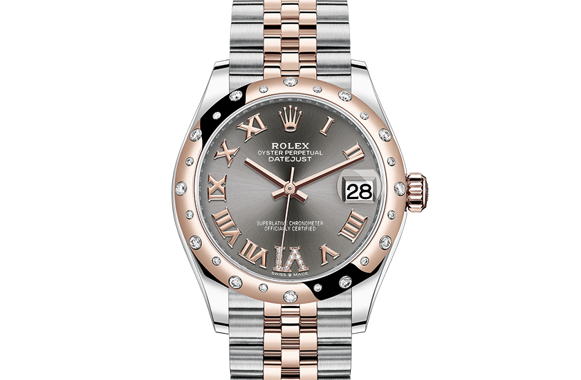 Model case:Oyster. 31 mm. Oystersteel. Everose gold and diamonds