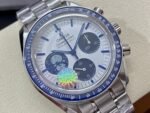 Omega Snoopy 150th Anniversary watch is a high-quality Superclone of the original Omega Speedmaster Silver Snoopy Award 50th Anniversary watch. It features a 42mm stainless steel case with a black ceramic bezel and a Hesalite crystal. The dial is black with a silver Snoopy logo and a moon phase display. The watch is powered by the VS Factory 3861 automatic movement, which is a clone of the original Omega Co-Axial Master Chronometer caliber 3861.