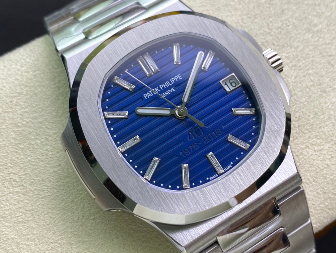 3K Factory Patek Philippe Nautilus 40th Anniversary Platinum Edition (Ref. 5711/1P) Superclone is a limited-edition watch commemorate the 40th anniversary of the Nautilus collection. self-winding Caliber 324 SC automatic movement. The dial is silver with a Nautilus pattern and applied gold hour markers and hands.