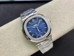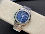 Patek Philippe Nautilus Annual Calendar 5726. It is a high-quality Superclone of the original Patek Philippe Nautilus Annual Calendar 5726. The watch has a stainless steel case, a blue dial, and a self-winding movement. It is water resistant to 120 meters.