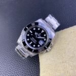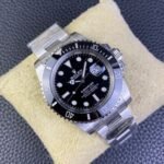 The watch also features a unidirectional rotating bezel, a screw-down crown, and a date window at the 3 o'clock position. It comes on a stainless steel Oyster bracelet with a Glidelock clasp