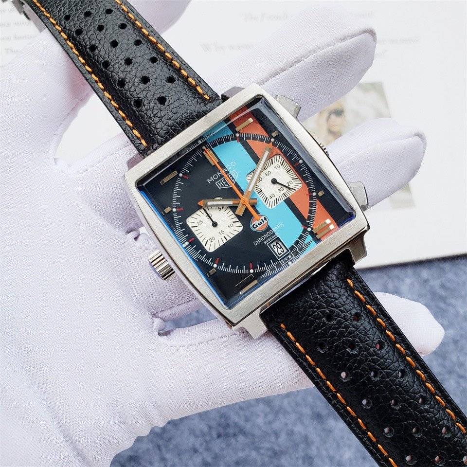 Tag Heuer Monaco Black Leather Strap / Chronograph/ Luxury Tag Watch For Men-s- 39mm -Replica watches